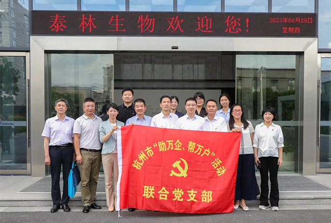 6月29日,杭州市衛健委黨委副書記、副主任應旭旻帶隊來東洲街道開展“助萬企、幫萬戶”系列活動,走親連心辦實事,破難攻堅促發展。應旭旻一行調研走訪浙江泰林生命科…