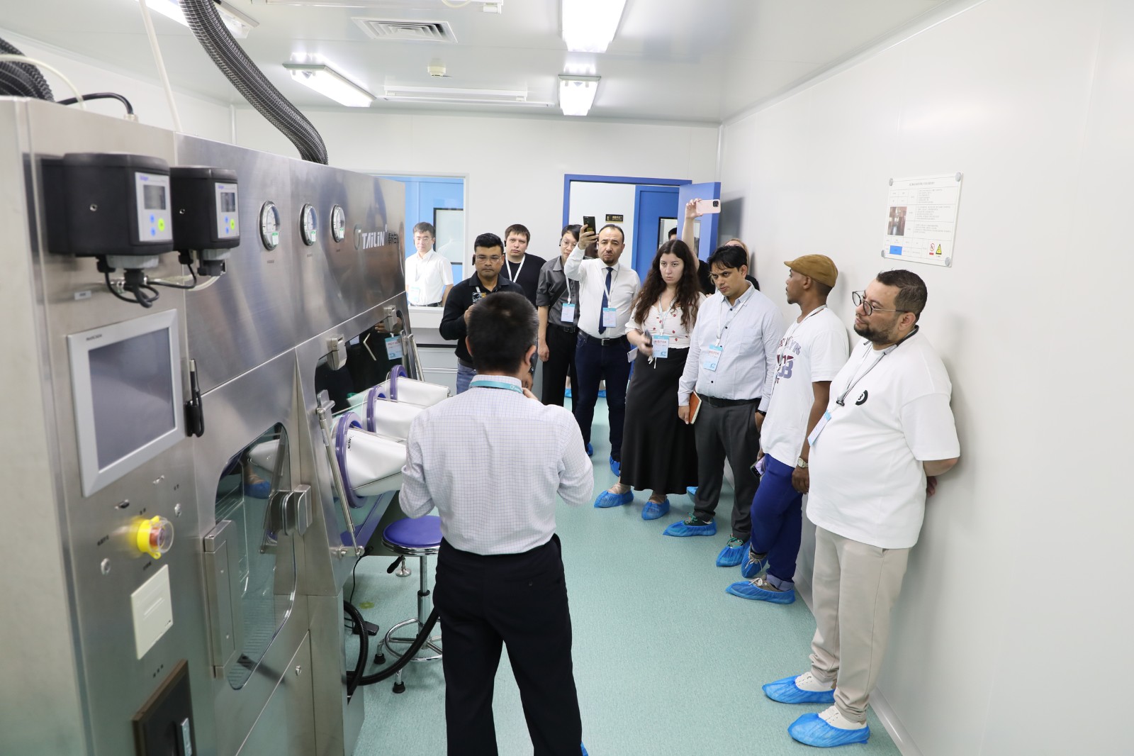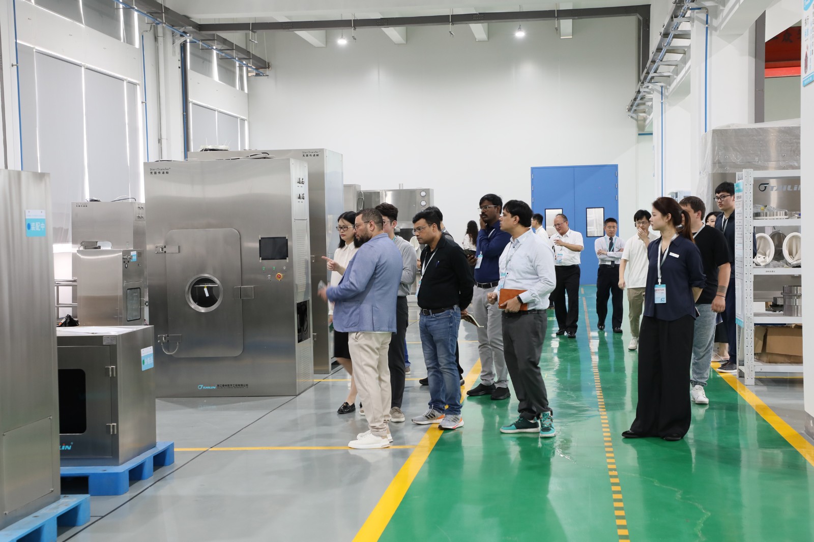 創(chuàng)新與高效的交響,離不開匠心的堅守。在工廠參觀環(huán)節(jié),海外客戶實地深入了解無菌隔離技術(shù)、細胞與基因制備生產(chǎn)、智能微生物檢測、核藥藥品無菌制備、無菌檢測、微生物檢測、膜過濾等領(lǐng)域重點產(chǎn)品生產(chǎn)制造的各個環(huán)節(jié)。在這里,領(lǐng)先的自動化產(chǎn)線、先進的加工設(shè)備、綠色高效的制造體系不斷映入眼底,全方面、多維度展示著泰林生物對產(chǎn)品全生命周期的嚴格把控。海外客戶對泰林生物規(guī)?;闹圃鞂嵙澆唤^口,更堅定了對泰林生物旗下產(chǎn)品的信心,期待后續(xù)對接更多項目的合作。